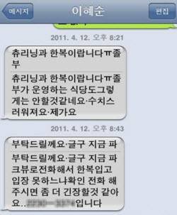 다수의 트위터 사용자들에 따르면 12일 저녁 6시30분 영화 의상 제작으로 유명한 한복 디자이너 이혜순씨는 저녁약속이 있어 신라호텔의 한 뷔페레스토랑을 찾았다.
