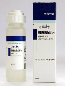 한독약품 '크레오신 티'는 액상형 여드름 치료제로 여드름의 원인균(프로피오니박테리움 아크네)을 없애는 방식으로 여드름을 치료한다. 물파스 형태로 돼 있어 여드름 발생부위에 바르면 끈적임이나 번질거림 없이 빨리 흡수된다.