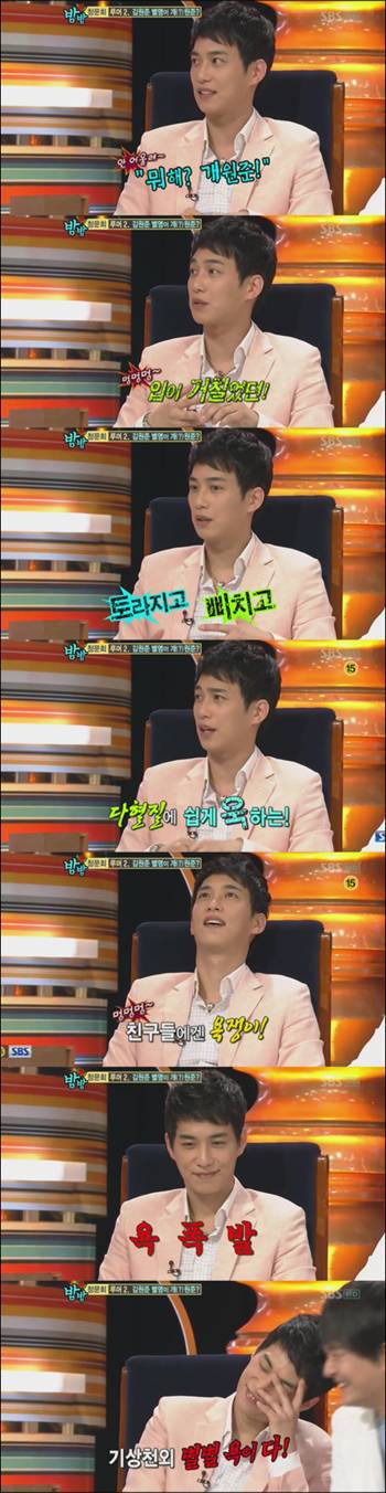 이에 함께 출연한 배기성은 "평소 김원준이 어릴 때 데뷔해 가식이 몸에 배었다"며"친구들끼리 있을 때 욕을 너무 많이 한다"고 폭로해 모두를 놀라게 했다.