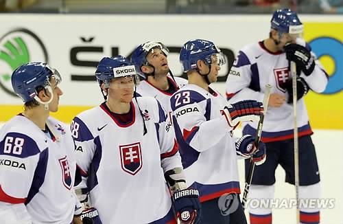 epa02720814 Players of Slovakia show their dejection after the Ice Hockey World Championship group E qualification match between Czech Republic and Slovakia at the Orange Arena in Bratislava, Slovakia, 06 May 2011. Czech Republic won 3-2. EPA/PETER HUDEC < 뉴스의 새 시대, 연합뉴스 Live >< 모바일 애플리케이션 >< 포토 매거진 >< 저작권자(c)연합뉴스. 무단전재-재배포금지. >