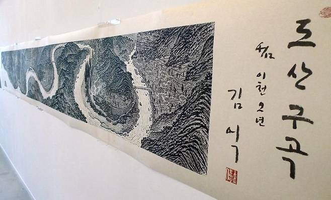 건물 들머리에 있는 대작 < 도산구곡 > 입니다. 정말 긴 판화입니다.