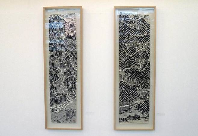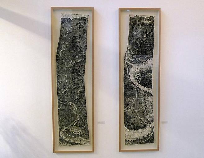 짝을 이루는 콤비 그림입니다. 역시 정교한 칼질로 산하의 아름다움을 보여줍니다. 그런데 표면 처리가 독특합니다.