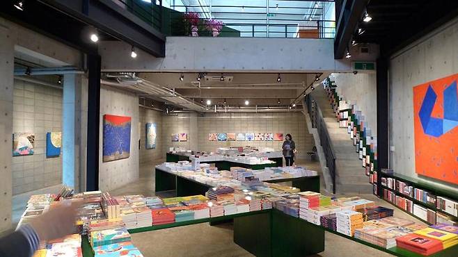 위아래 공간을 뚫은 전시장 겸 책방이었는데 마침 백순실 화백의 전시회 중이기도 했습니다. 책과 그림이 어우러지는 풍경은 언제나 반갑습니다.