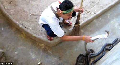 동남아시아의 한 동물원에서 위험한 맹독을 지닌 코브라를 상대로 슬리퍼에 반바지, 티셔츠 입은 한 젊은이가 빗자루를 들고 나타난다. 그는 전문가처럼 구덩이에 모여 있는 코브라를 아무렇지도 않게 옆으로 던지고는 태연스럽게 청소를 한다.