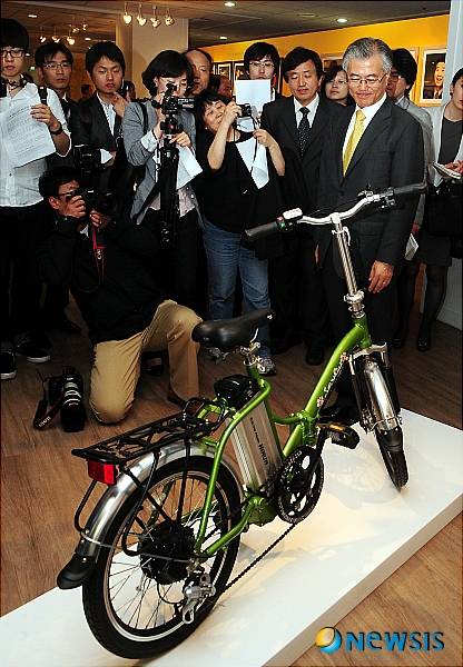 【서울=뉴시스】김인철 인턴기자 = 문재인 사람사는세상 노무현재단 이사장이 12일 오후 서울 종로구 인사동 서울미술관에서 열린 '故 노무현 대통령 2주기 추모전시회'에서 故 노무현 대통령이 타던 자전거를 살펴보고 있다.