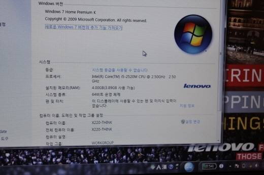 [쇼핑저널 버즈] 한국레노버가 5월 12일 인텔 2세대 코어 프로세서를 얹은 '씽크패드' 새 모델을 발표했다. 당일 현장에 전시되어 있던 씽크패드 X220은 인텔 코어 i5-2520M CPU에 메모리 4GB를 얹은 중급 모델이다. 배터리로 작동하고 있어서 윈도우 성능 지수는 확인할 수 없었다.