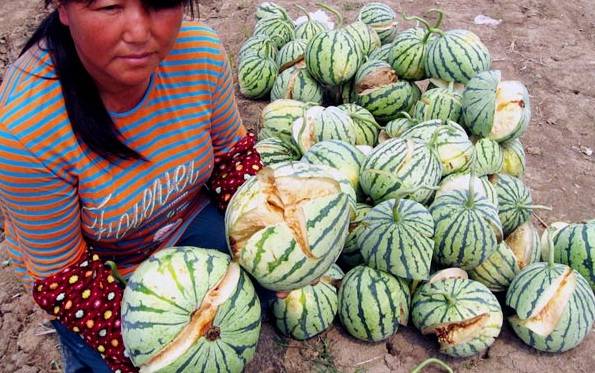 지난 8일부터 수박들이 하나 둘 폭발하기 시작, 모두 쩍쩍 갈라져 버린 것이다. 인민일보 인터넷판인 인민망(人民網)은 14일 "수박농사에 처음 도전했던 류씨 부부는 이번 '수박폭발'로 자리에 앓아누웠다"고 보도했다.