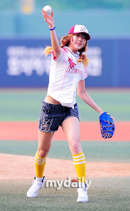 ▲ 달샤벳 수빈 '턱돌이에게 기습 키스'▲ 턱돌이 '안아달라는 수빈 뿌리치네'▲ 달샤벳 수빈 '스트라이크 존에 꼭'▲ 달샤벳 수빈 '거침없는 10대 시구'▲ 달샤벳 수빈 '안정된 포즈, 멋진 시구'