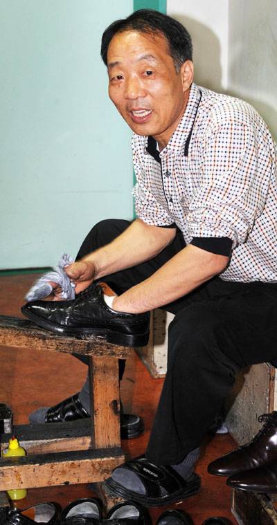 "도와주신 분들에게 보답한다는 생각으로 힘 닿는 데까지 정성껏 구두를 닦아야죠." 새까매진 그의 손에 놓인 구두는 세상의 어느 광채보다 빛났다.