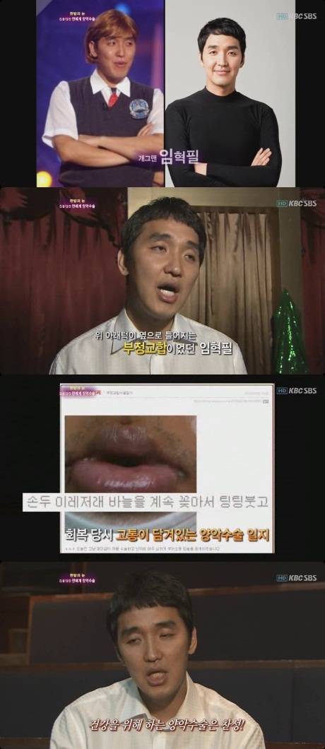 수술 후 새로운 삶을 찾았지만 끊임없는 고통을 참아냈다는 임혁필은 "붓기가 심하고 입이 꽁꽁 묶여 있어 정말 미칠 것 같았다"며 "건강과 치료를 위한 양악수술은 찬성하지만 미용을 목적으로 하지 않았으면 한다"고 전했다.