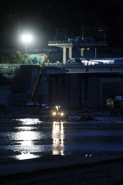 4월16일 토요일 낮, 밤새 이어진 타설작업이 마무리 단계에 들었다. 강 건너 함바집의 점심 메뉴는 국수다. 철수는 국수를 좋아한다. 지붕 위로 올라오는 철수에게 기식이 물었다. "점심은 먹었냐?" "이것만 하고 먹어야죠." "빨리 하고 나와라. 밥 먹자." "알았어요. 형님." 철수는 지붕 위에 섰다. 하청업체인 영광건설 김민수(가명) 차장도 옆에 섰다. 마무리 작업을 하던 10여명은 점심을 먹으러 내려갔다. 다른 7명은 다리 위에 앉아 철수의 지시를 기다리고 있었다. 콘크리트를 더 부으라면 더 붓고, 수평이 안 맞는다고 하면 맞춰야 한다.