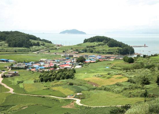 신흥마을은 바람 많은 섬의 특성상 돌담이 높고 지붕이 낮다. 마치 누가 꾹 눌러놓은 집들 같다. 그 아래로 구들장논이 펼쳐진다. 땅이 부족해 한 삽 한 삽 산을 깎아 만든 논에서 소 혓바닥만 한 땅이라도 놀리지 않았던 선조들의 알뜰함을 볼 수 있다.