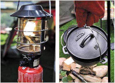 Q: 랜턴은 어떤 제품이 좋지요?A: 사용연료에 따라 건전지, 액화석유가스, 화이트가솔린, 등유 랜턴으로 구분됩니다. 초보자는 사용과 취급이 쉬운 액화석유가스 랜턴이 좋습니다. 작업등, 방수형광등이나 LED 같은 전기제품을 사용하기도 하는데, 이런 경우 배전반에서 전기를 끌어오는 선이 필요합니다.