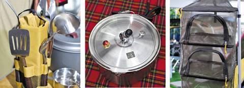 Q: 코펠 등 식기류는 등산용 알루미늄제품이 적합한가요?A: 오토캠핑은 차를 이용하는 캠핑이니 들고 다닐 부담이 적죠. 집에서 사용하는 압력솥과 냄비 등을 그냥 써도 됩니다. 캠핑 전용 제품 중에선 가격이 높지만 스테인리스스틸 제품이 내구성, 심미성이 뛰어납니다. 재래시장 식기전문점에서 구입해도 되는데, 포개지는 제품이 수납하기 유리하겠죠. 물통, 식기건조망, 설거지가방이 있으면 편리해요. 양념통은 음료수병이나 약병을 활용하세요. 바비큐그릴, 더치오븐을 갖추고 특별한 요리에 도전해도 괜찮죠.