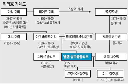 여성 과학자들의 롤 모델로 존경받는 퀴리 부인은 노벨상과 관련해 '첫 여성 수상자' '최초 2회 수상자' 등 다양한 기록을 보유하고 있다. 퀴리 부인의 가족도 과학자로 명성을 떨쳤다. 퀴리 부인과 남편, 딸, 사위 등 4명이 노벨상을 받았다.