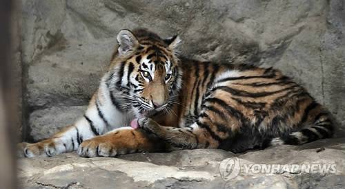 (과천=연합뉴스) 신영근 기자 = 23일 오후 경기도 과천 서울동물원에서 일반에 공개된 시베리아 호랑이 '펜자'. 서울동물원은 지난달 21일 러시아 정부로부터 일명 백두산호랑이라고 불리는 시베리아 호랑이 1쌍을 기증받아 이들 호랑이의 출신지를 따 암컷에게는 '펜자', 수컷에게는 '로스토프'라는 이름을 선사했다. 하지만 변화된 환경 때문에 이들 호랑이의 합사에는 시간이 걸릴 것이라고 서울동물원은 밝혔다. 2011.6.23