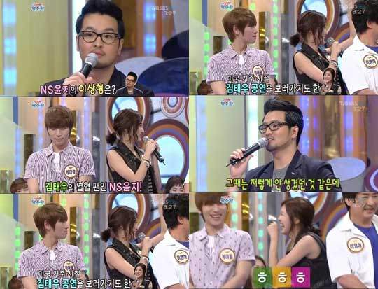 이날 방송에서 NS윤지는 "김태우가 이상형"이라며 "미국 거주 시절부터 열혈 팬으로 하늘색 풍선을 들고 공연도 갔었다"고 고백했다.