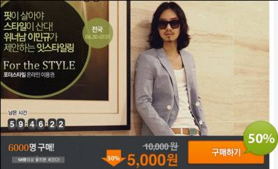 50억 매출 쇼핑몰, 이민규의 '포더스타일' 티켓몬스터에서 50% 할인