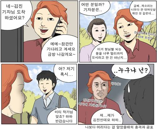 '미티'란 젊은 사람들이 귀여운 척 혀 짧은 소리로 내는 '미치(겠다)' 소리다. 웃겨서 미치겠고, 즐거워서 미치겠고, 만화에 미치겠다고 지은 필명이다. 인기 웹툰 '남기한 엘리트 만들기'(남엘만)의 홍승표 작가(29). 그는 190cm의 큰 키에 어울리지 않는 혀 짧은 소리로 자신의 필명을 설명했다.