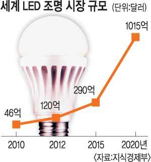 지식경제부가 최근 'LED 2060 계획'을 통해 지난해 2.5%에 불과한 LED 조명의 보급률을 2020년까지 국가 평균 60%, 공공기관 100%로 높이겠다고 발표하면서 시장은 더욱 달아올랐다. 지식경제부에 따르면 세계 LED 조명 시장 규모는 지난해 46억 달러(약 4조9000억원)에서 매년 연평균 45%씩 성장해 2020년에는 1015억 달러(약 108조2500억원)로 급성장할 것으로 전망된다.