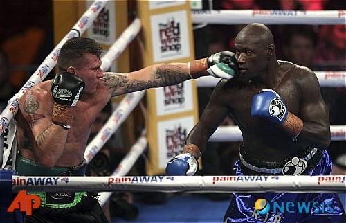 【시드니(호주)=AP/뉴시스】안토니오 타버(미국,오른쪽)가 20일(현지시각) 호주 시드니 엔터테인먼트 센터에서 열린 국제권투기구(IBO) 라이트헤비급 타이틀전에서 챔피언 대니 그린(호주)과 경기하고 있다.