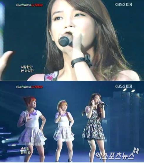 아이유는 22일 방송된 KBS 2TV '뮤직뱅크' 인 도쿄 케이팝 페스티벌에서 '좋은날'과 '있잖아'를 열창했다.