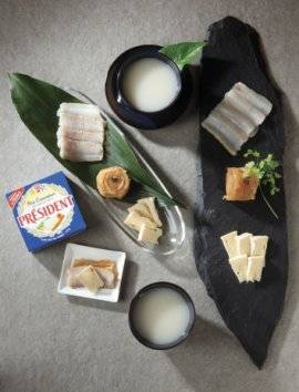 돼지고기 수육과 홍어를 김치에 싸서 먹는 홍어 삼합은 수육을 삶아야 하기 때문에 번거로울 뿐 아니라 돼지고기 누린내를 제거하는 것도 쉽지 않다. 돼지고기 대신 단백질과 칼슘 함유량이 높은 카망베르 치즈를 얹어 먹으면 삭힌 홍어의 톡 쏘는 맛을 부드러운 카망베르가 감싸줘 막걸리의 맛을 돋운다.