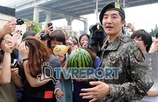 [TV리포트 김재창 기자] 그룹 에픽하이의 DJ 투컷츠(본명 김정식)가 9일 오전 인천광역시 부평구 구산동 17사단에서 열린 전역 신고식에서 팬들과 대화를 나누고 있다.