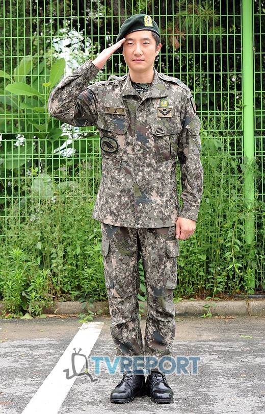 [TV리포트 김재창 기자] 그룹 에픽하이의 DJ 투컷츠(본명 김정식)가 9일 오전 인천광역시 부평구 구산동 17사단에서 열린 전역 신고식에서 거수경계를고 있다.
