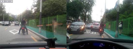 문제는 한낮 도로변에서 오토바이를 세우고 노골적으로 이 여성을 촬영하는 한 남성의 행동이다. 또한 사진을 촬영하고 공개한 차량 탑승자도 비난을 받고 있다.