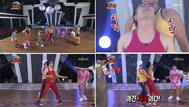 이에 박명수와 정준하는 끈적끈적한 음악에 맞춰 진지한 표정으로 댄스를 선보이며 주변을 압도했다. 서로 몸을 밀착해 흐느적거리는 '하 & 수 불장난 댄스'를 만들어 낸 것.