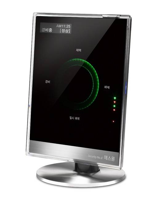거실에 설치되는 세콤아트 주장치는 LED 불빛을 통해 현재 경비 상태를 알려 준다. 밖에 부착된 카드리더기를 통해서만 확인 가능했던 기존 시스템과 달리 실내에서 경비상태를 확인할 수 있다.