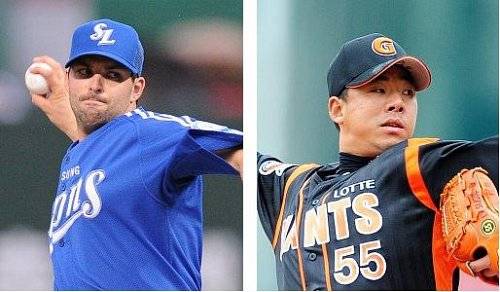 삼성 저마노(왼쪽) 롯데 김사율 |