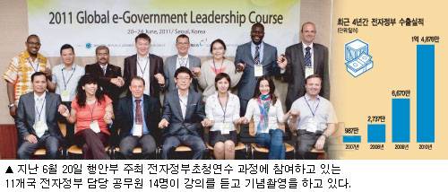 지난해 우리나라 전자정부 수출액은 1억5000만달러로 사상 최대를 기록했다. 이는 지난 2009년 대비 223% 증가한 것이다. 에콰도르, 인도네시아, 모로코 등 수출대상 국가도 다양해졌다.