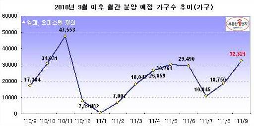 30일 부동산정보업체 부동산1번지에 따르면 9월 한달간 전국 62개 사업장에서 총 3만9676가구 중 3만2321가구가 일반 공급될 예정이다. 8월 공급물량이 1만8750가구였던 점을 감안하면 한달 새 2만가구 이상이 증가한 것이다.