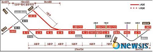 【대전=뉴시스】박희송 기자 = 한국철도시설공단은 1일 신안산선 복선전철 여의도 외 12개 지하역사에 대해 민간의 창의적 아이디어가 담긴 설계안을 선정하기 위해 설계공모를 시행한다. 사진은 신안선 복선전철 노선도. (사진=한국철도시설공단 제공)