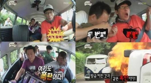 의문의 전화 상대는 실제 폭발 상황에 멤버들이 깜짝 놀라자 "너희 눈앞에 있는 그 폭탄도 방금 같은 위력을 갖고 있으니 잘못하면 버스는 가루가 된다"라며 "폭탄이 든 가방을 차에서 빼내도 터진다"고 공포감을 조성하기도.
