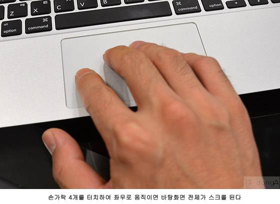 맥북의 터치 패드는 손가락 한 개부터 네 개까지 모두 활용할 수 있으며, 기능과 역할도 각각 다르다. 아이콘 선택, 드래그(끌기)와 드롭(놓기), 창 축소/최대화, 데스크탑 화면 전환 등, 파일/폴더는 물론이고 창/화면 조작까지 터치 패드로 할 수 있다. 결정적으로 이와 같은 패드 조작이 대단히 유연하고 부드럽게 동작해서 사용 상의 불편함이 거의 없다. 이러한 기능은 일반 노트북이, 특히 윈도우 운영체계가 본받아야 할 것이다. 철저히 사용자 지향적인 설계 말이다.