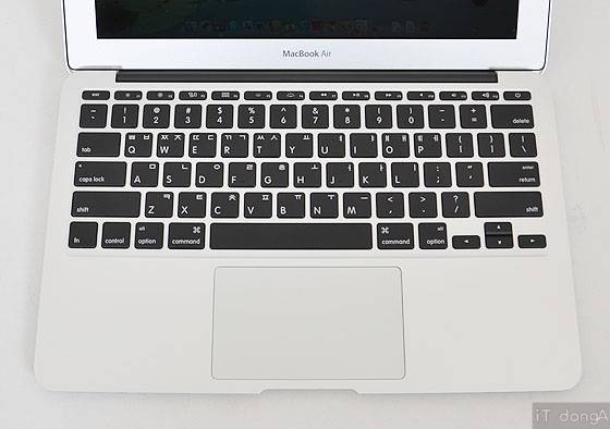 각 키의 배열은 일반 노트북과 거의 유사하며, 일반 노트북의 알트(alt)키, 윈도우 키 등 대신에 옵션(option)키, 커맨드 키 등이 배치돼 있다. 용도는 일반 노트북의 그것과 유사하다. 다른 키와 연동하여 창을 닫거나 축소하는 역할이다. 다만 한 달 동안 맥북을 사용하면서 이들 키를 활용할 기회가 많지 않아 그다지 불편함을 느끼진 못했다(이들 특수 키는 다른 키와 조합하여 단축 키 기능으로 주로 활용된다).