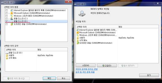 색인기능을 해제하기 위해서는 색인 옵션(제어판에 위치)을 실행시켜야 하며, 여기서 '수정'버튼을 누르면 나타나는 창에 'D:'(HDD가 탑재되어 있다면)를 선택하거나 'C:'(SSD에 해당하는 드라이브)를 선택해 체크를 해제하면 된다.