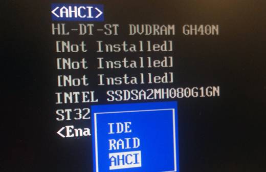 AHCI 설정은 메인보드의 바이오스(CMOS)설정 화면에서 할 수 있는데, PC 전원을 켠 직후 'Delete' 키나 'F2' 키를 누르면(메인보드에 따라 다름)설정 화면으로 들어간다. 바이오스 설정 화면 구성 역시 메인보드에 따라 다르지만, 대부분 'S-ATA Configuration'(또는 Storage Configuration)메뉴에서 AHCI 기능을 활성화할 수 있다(기본 설정은 'IDE'다).