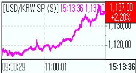 달러-원 24.5원 오른 1137.0원에 마감