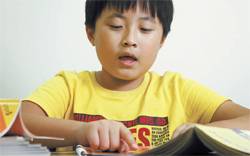 김재민군은 영어 오디오 CD를 듣지 않으면 영어 문장을 자신 있게 읽지 못해 '스토리 파닉스' 학습을 하기로 했다. [김경록 기자]