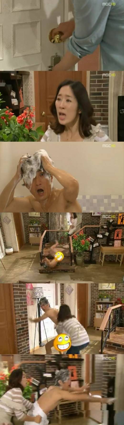 이에 윤유선은 화장실에서 머리를 감던 안내상에게 빚쟁이가 들이닥치는 사실을 알렸고, 안내상은 옷 입을 틈도 없이 그대로 대피했다.