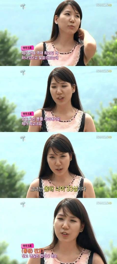다음날 자기소개에서 여자5호는 "오신 분들 사이에서 최고다. 전 나이가 많다. 다 누나라고 부르셔야 한다"며 "저는 1979년생 올해 33세다"고 고백했다.