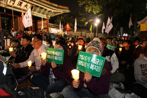 "1%에 세금, 99%에 복지" 거리 나선 '세계시민'