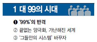 [한겨레] 15일 벌어진 전세계 '보통사람들의 동시시위'는 2008년 이후 각국이 벌여온 위기 해결이 근본적 한계에 봉착했음을 선언하고 있다. 3개국 '99%' 사람들의 사연과 양극화가 깊어지고 위기가 상시화된 세계경제의 구조적 문제, 그리고 '1%'만을 위한 시스템을 바꾸려는 실험 등을 3차례에 걸쳐 전한다.