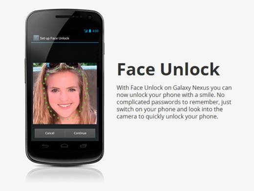 보안 기능으로 얼굴인식 기능인 '페이스 언락(Face Unlock)'이 추가됐다(일반 노트북에서 흔히 볼 수 있던 얼굴인식 기능이다). 다만, 노트북의 얼굴인식률이 그리 높지 않은 것처럼, 안드로이드의 얼굴인식률도 많이 부족한 것으로 보인다. 실제 아이스크림 샌드위치 발표 현장에서 이 기능에 대해 소개할 때, 안드로이드폰이 발표자의 얼굴을 제대로 인식하지 못하는 상황이 발생하기도 했다.