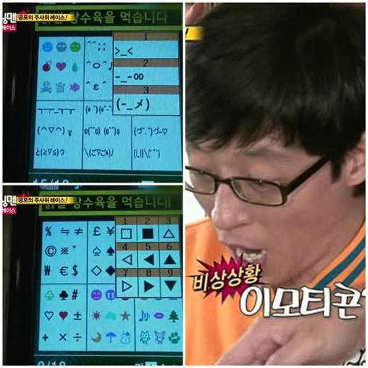 유재석은 특히 문자 마지막에 붙은 '^^(웃음)' 이모티콘을 찾지 못하고 쩔쩔맸다. 한참 뒤 유재석은 "아 여기 있었네"라며 이모티콘을 찾아냈고 출연진들은 굴욕을 맛본 유재석이 처량해 보였는지 도움을 주려고 애썼다.