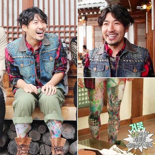이날 노홍철은 타탄체크 패턴의 셔츠와 스터드 장식이 돋보이는 데님 베스트를 매치한 스타일을 선보였다. 여기에 카키색 팬츠와 레깅스를 착용해 노홍철만의 독특한 패션 스타일을 완성시켰다.
